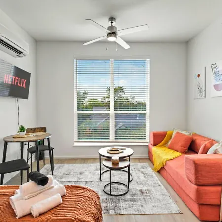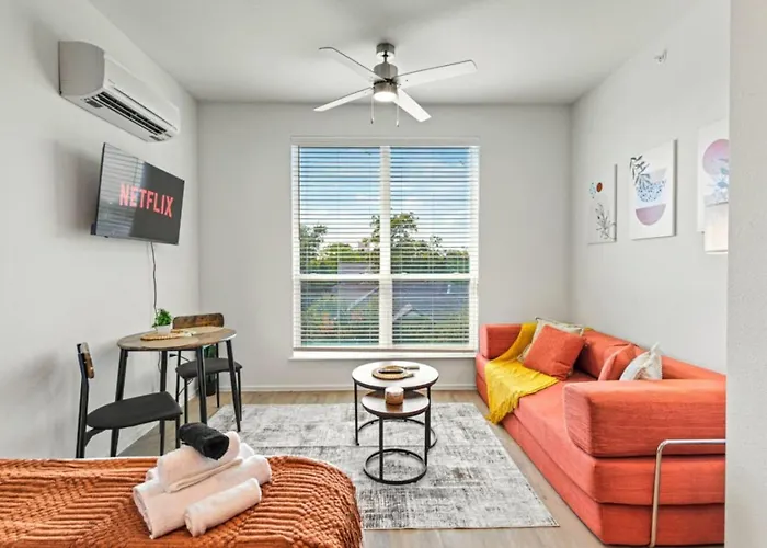 The check-in time at Designer Suite Bishop Arts Gym, Yoga Games is from 15:00 and check-out time is till 10:00.